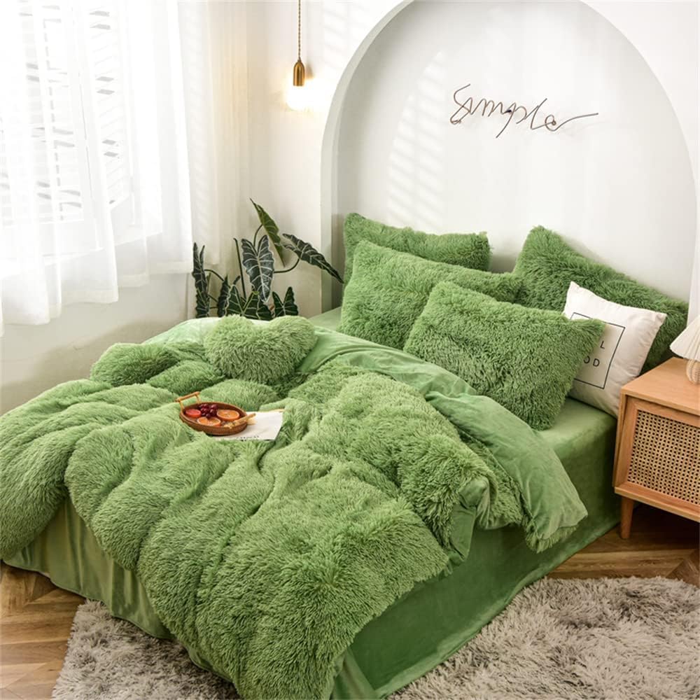 Snuggle into luxury with the CozyNest Avocado Duvet Set – a 3-piece ultra-soft, shaggy bedding set in a soothing avocado green. Includes 1 duvet cover and 2 pillow shams with easy zipper closures for plush, stylish comfort.